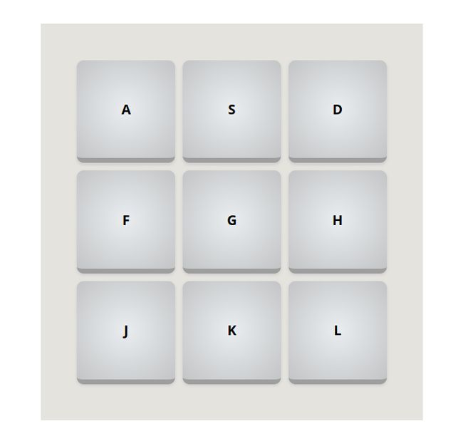 }Los pads simplemente llevan un pequeño borde abajo simulando estar en 3D. Cuando se le añade la clase playing se cambia el color del pad, se elimina el borde, y se baja un poco el botón para que parezca que se ha pulsado.