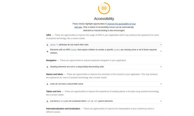 La accesibilidad no está mal del todo aunque tienen problemas con los atributos aria y con algunos elementos del HTML.