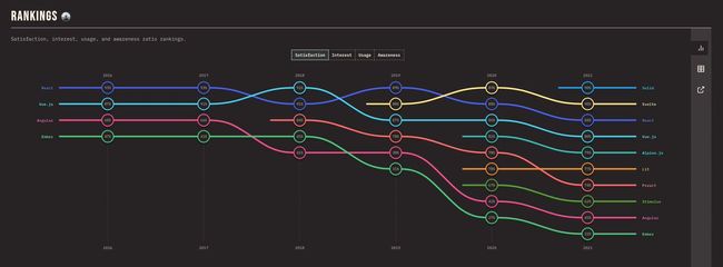 Ahora que me fijo, este año no han preguntado por herramientas tipo editor de textos/IDE o navegador que usa la gente? Esas cosas tambiñen molan para ver tendencias.