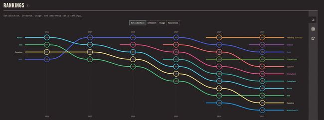 En tema testing parece que en satisfacción le han quitado el trono a Jest. Testing library muy querido junto con Vitest (tengo ganas de probarlo). De todas formas en uso sigue ganando Jest y Mocha.