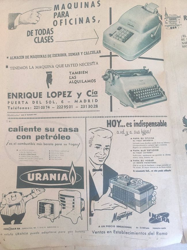 Mirad los anuncios de máquinas de escribir y lavadoras