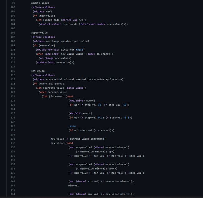 Además que al no tener variables y por la forma de programar me resulta complicado leer el código, pero ojo, es mi opinión, lo mismo si ya sabes clojure y cómo va el proyecto lo lees mucho más fácil. Es por criticar algo, porque me parece brutal el trabajazo que están haciendo.