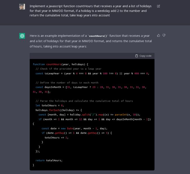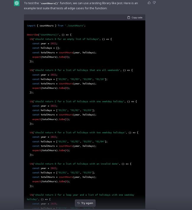 Incluso he pedido que esriba una suite de tests para esa función y también lo hace. Vale, es cierto que no comprueba que la fecha sea válida pero qué más queréis, esto ya me parece fascinante, incluso te mete comentarios en el código.