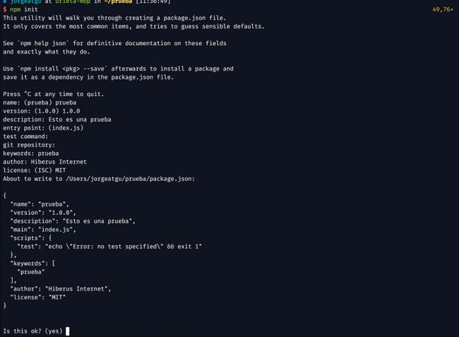 Este comando sirve para crear el archivo package.json. Te guiará y preguntará una serie de preguntas para rellenar el archivo y así no lo tengas que crear a mano